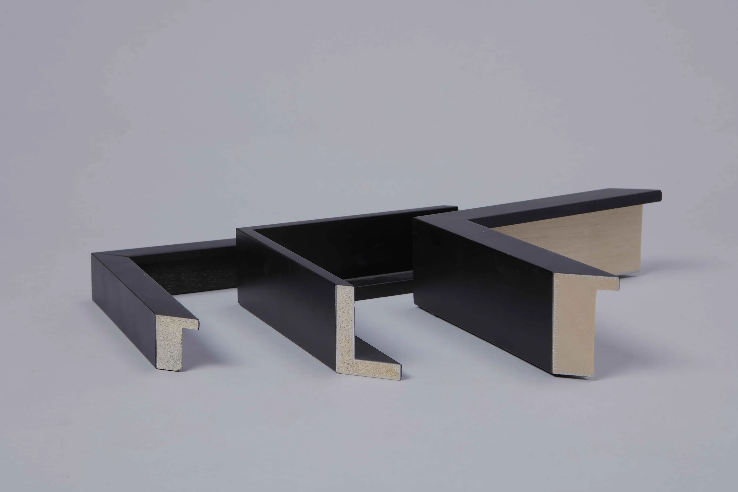 All of our frames are custom made in house by hand. We offer three frame profiles in eight finishes- three veneer finishes and five hand-stained finishes. The size and medium of the artwork determines the frame profile used, but all of the finishes can be paired with any of our frame profiles.